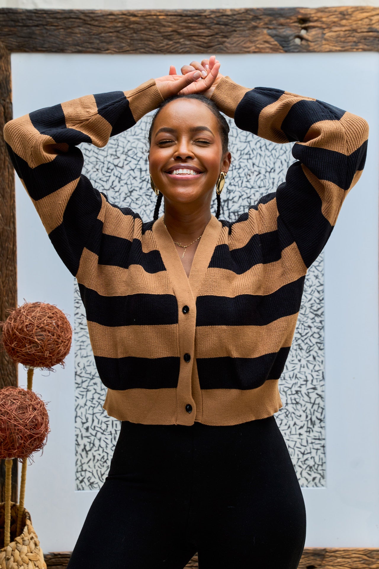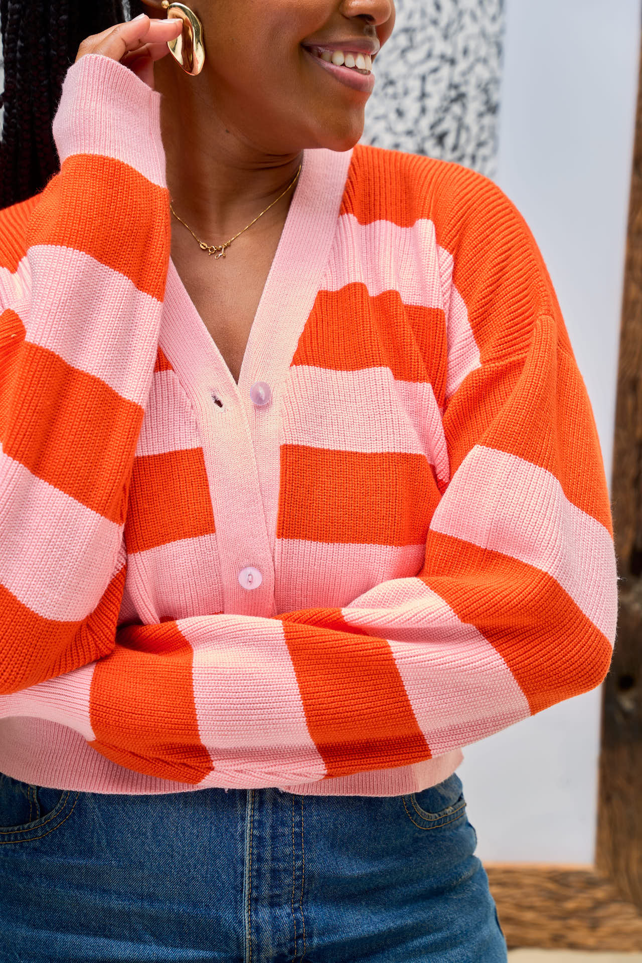 Meet the cardigan that gets along with everything! It's perfectly cropped with dropped shoulders and oversized sleeves that bring just the right about of drama while still keeping it casual. And don't get us started on the olive green and beige combo that pairs perfectly with so many other colours in your wardrobe.